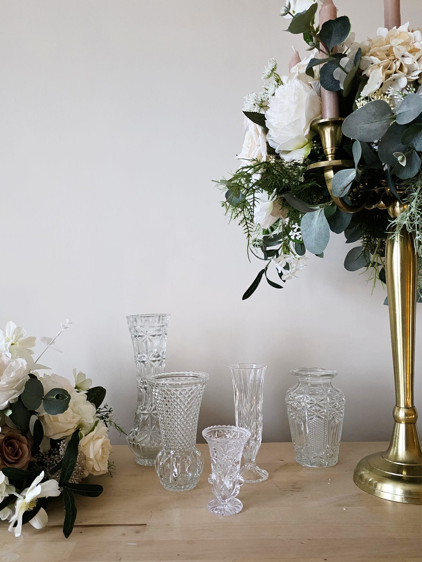 Isoin ja pienin sopivat tarjoilupöydän maljakkopariksi ja keskikokoinen esim morsiuskimpulle.