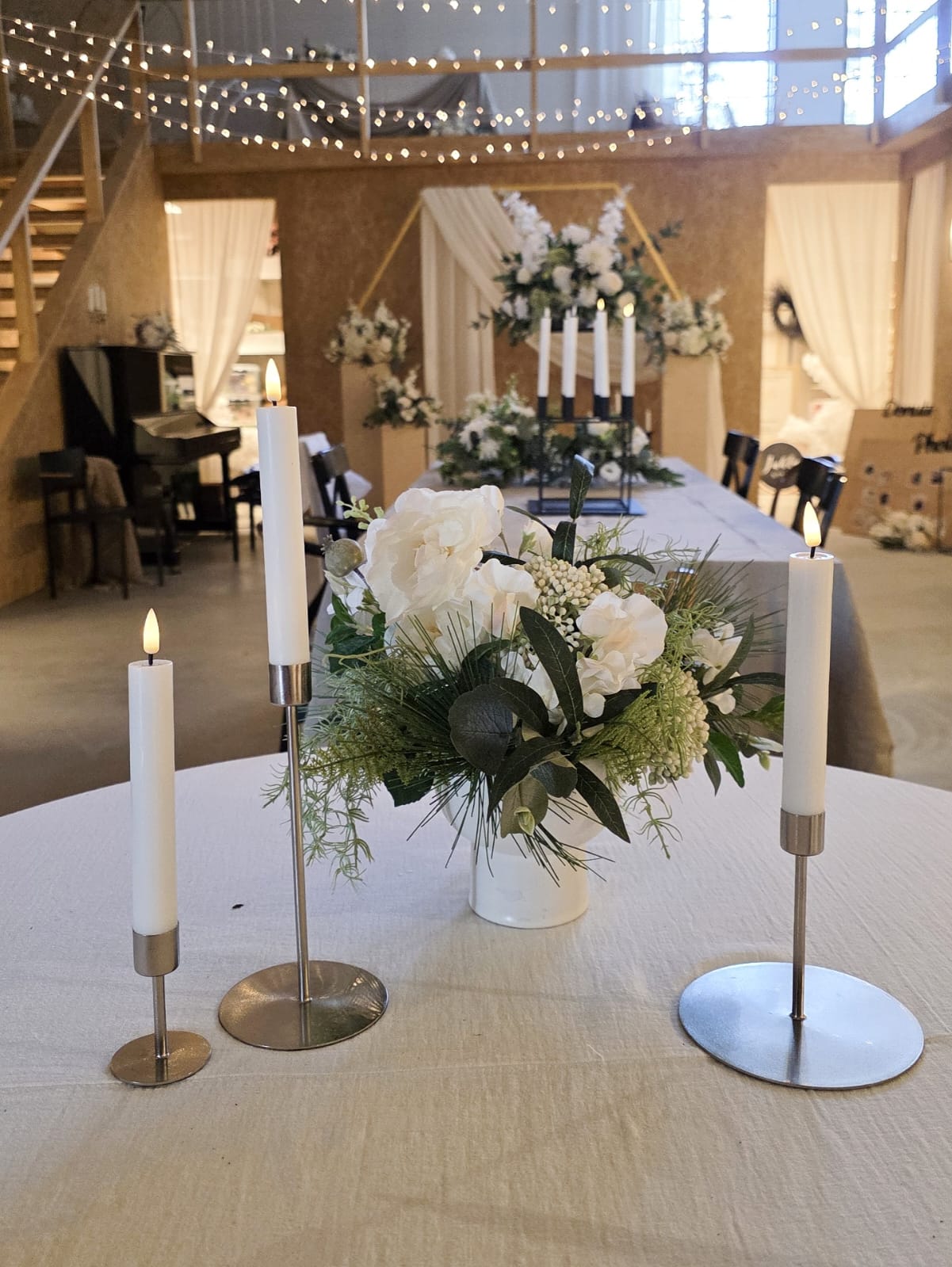 Kokoelma hopeanvärisiä erikorkuisia kynttilänjalkoja - 10 cm - 28 cm - 50 kpl -