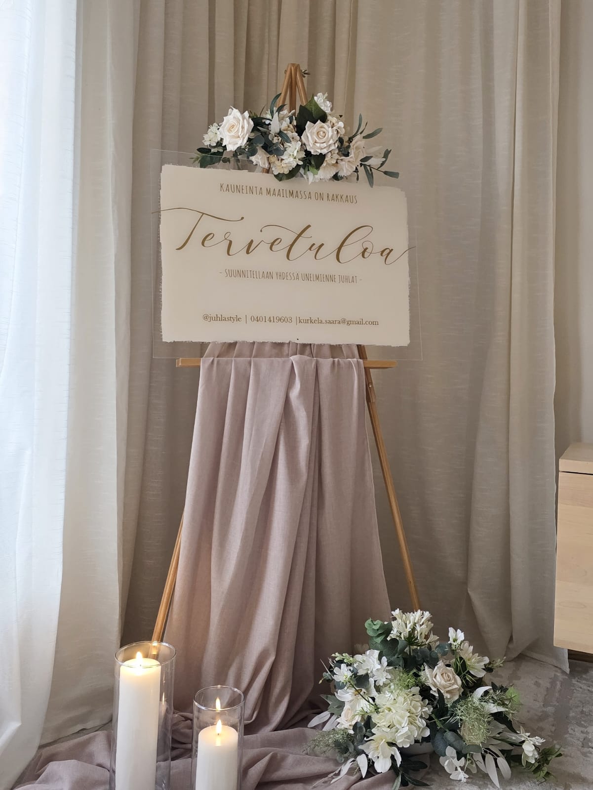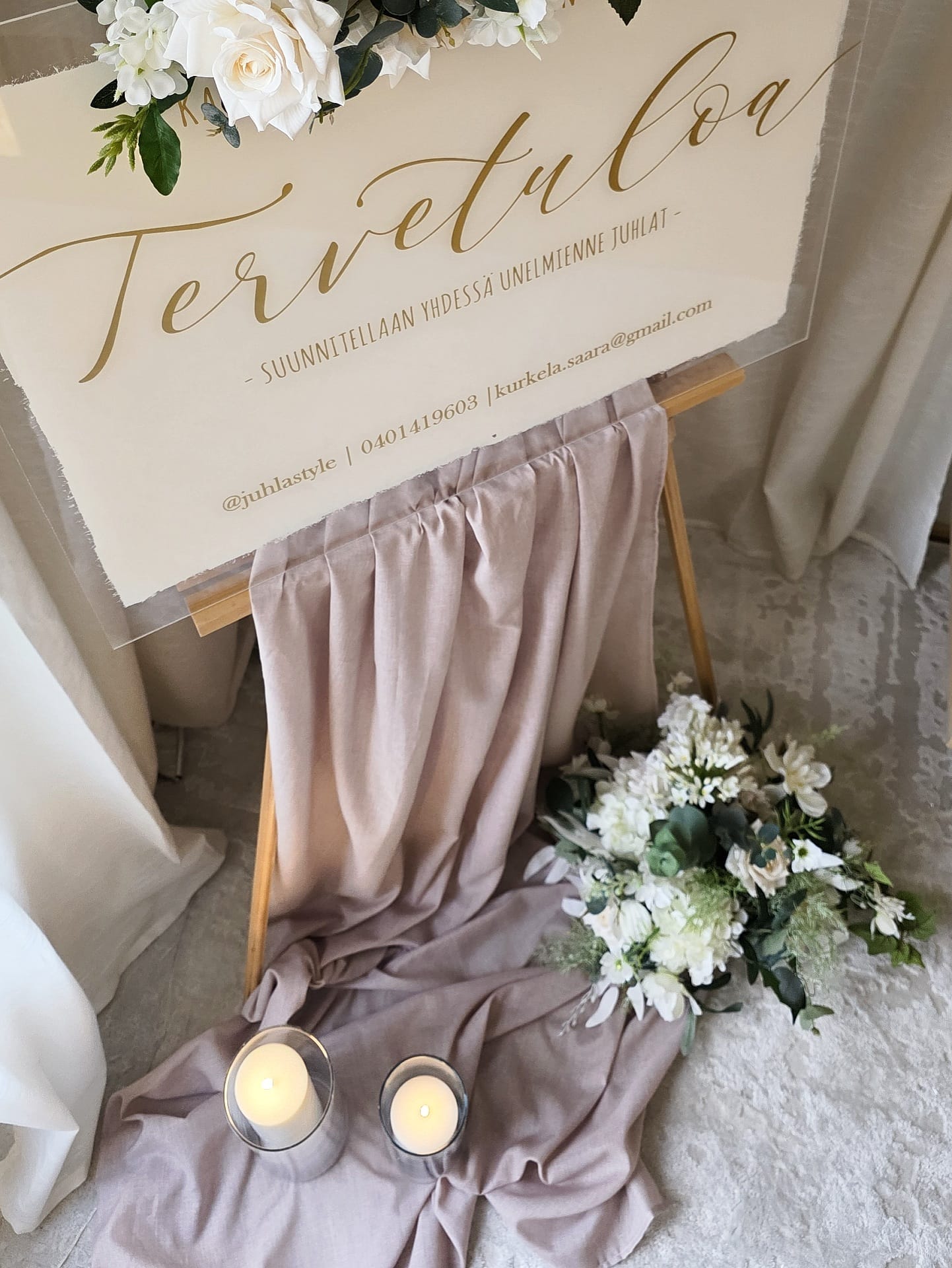 Sopivat esim hääkaareen, hääparinpöytään (kuten alla kuvassa), kyltteihin jne.