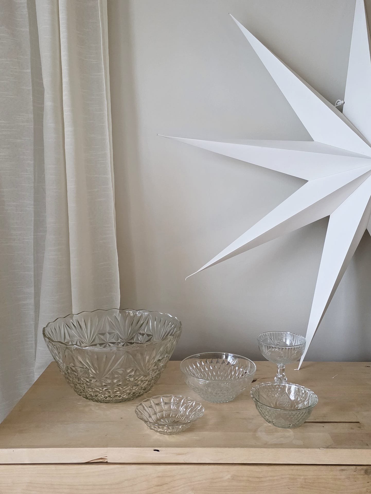 Monikäyttöiset lasikulhotarjoiluastiat.