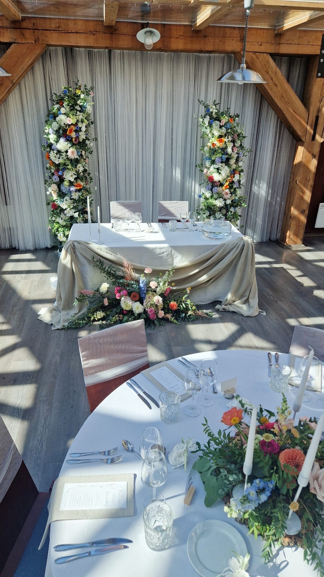 Sopii hyvin photoboohiin, hääparin pöydän taakse tai kylttien vierelle. Helposti tuunattavissa kukkaniitty-sarjaan sopivaksi.