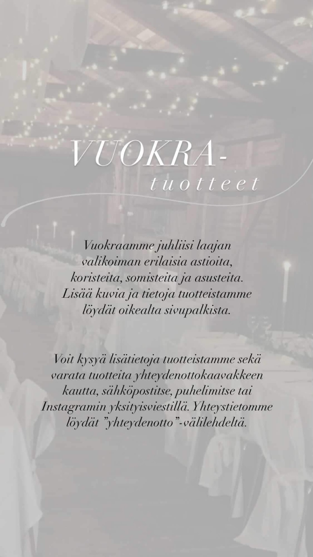 Meiltä löydät laajan valikoiman eri tuotteita unelmajuhliisi:
